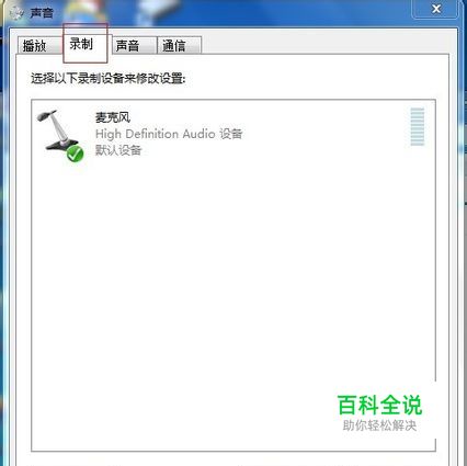 点击声音后出现声音对话框,选择录制按钮,这时候麦克风是插入电脑的。