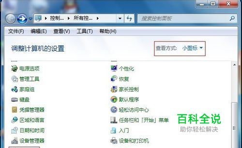 开始选择控制面板,在控制面板右上角把查看方式设置成小图标,找到声音选项,