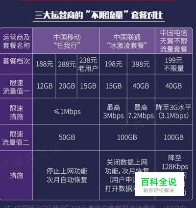 至此,三家运营商都有不限量产品,具体对比下三大运营商套餐情况看看