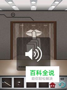 第四十关,电梯门上画了一个大大的噤声标志,看起来不知所云,其实过关方法非常的简单,只需要把手机调成静音就可以了。(在游戏中,按住手机降低音量的按钮,直到静音即可)