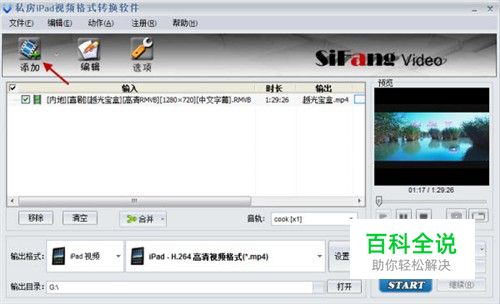运行私房iPad视频格式转换软件,点击软件界面左上角的“添加”按钮,然后将网上下载的视频文件添加到软件窗口中;想要更简单的话你也可以直接用鼠标把 电影文件拖拽进软件界面中。在该iPad视频转换软件主界面右侧的预览窗口中我们可以对该视频文件进行简单娱乐,播放控制十分简单。