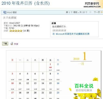 选择自己喜欢的模板,点击下载以后,office会自动将用户选择的模板下载并安装好。这里我们选择“2010年花卉日历”模板。