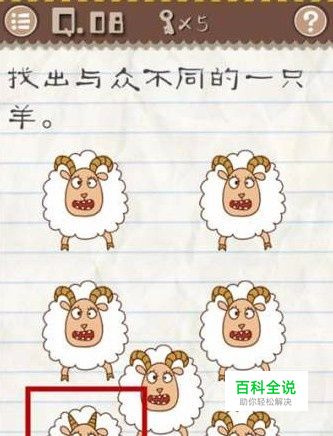通关攻略:其实这关最左下角是有两只羊的,拖动拉出其中一只,就会发现,最左下角的羊的羊角跟其他羊长得不一样,点击这只羊就可以通关了。