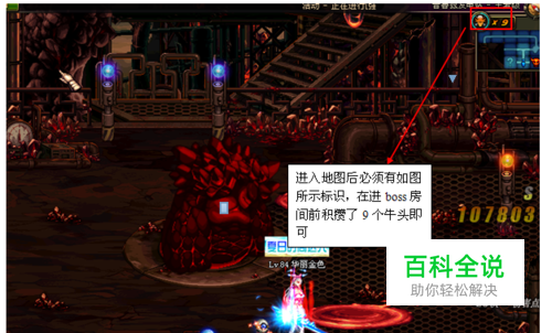 进入地图后,必须要有如图所示标识,并且在进入boss房间之前,已经积攒了9个小牛头(进入boss房间恰好10个)