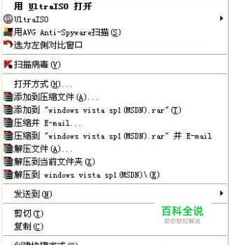 3、找到刚才下载的Vista sp1旗舰版,右键查看快捷键, 然后从上往下点第二项,选择加载到虚拟以驱动器。如下图: