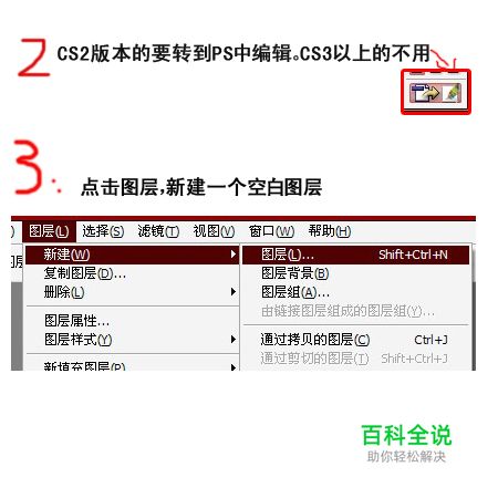 点击图层,新建一个空白图层( CS2版本的要转到PS中编辑,CS3以上的不用啦)。