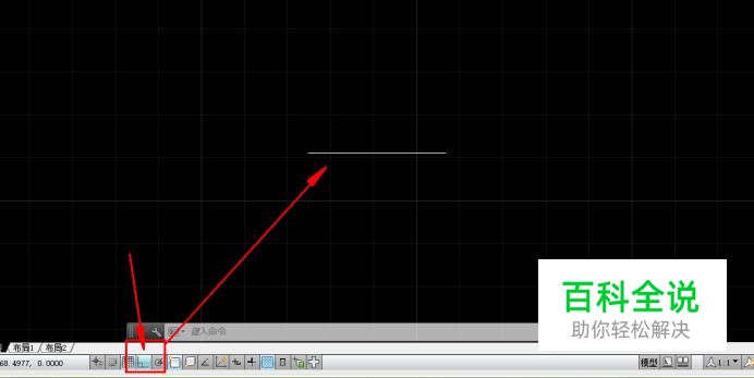 打开CAD,打开正交按钮,画一条直线。