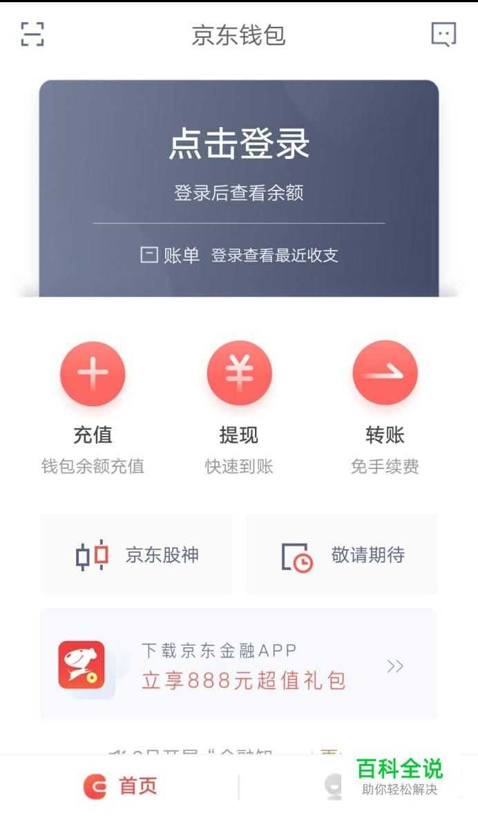 在应用市场中找到“京东钱包”并下载安装,安装后便可以用自己的京东账号进行登录。如果没有京东账号要先注册。