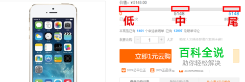 此经验为在零钱夺宝云购夺宝时购买的一个方法,就是将进度条分为三个阶段来购买,提高中奖率