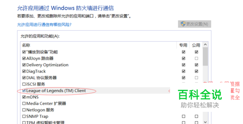 最后在防火墙列表中出现了这个进程,在专用或公用打勾,就完成了。