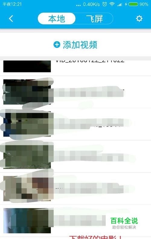 一般视频都能扫描出来的,如果扫描不出就手动添加,点上面的添加视频,找到你放电影的根目录(手机内存或者内存卡位置)。