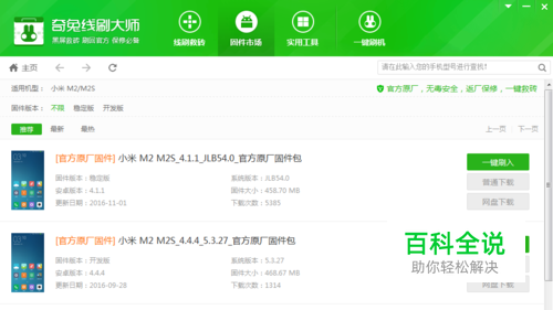 选择点击刷机模式后,在搜索栏里输入“小米M2”字眼,搜索相关的手机机型线刷包。选择线刷包,进行下载。