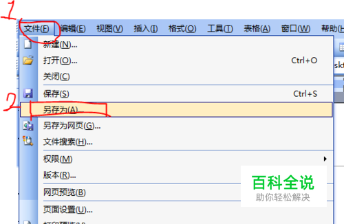 打开要编辑的WORD文档,文件→另存为,如下图: