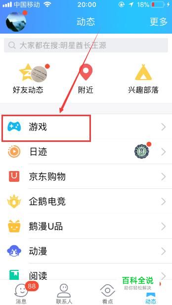 首先打开手机QQ软件,之后再在【动态】页面点击【游戏】按键。