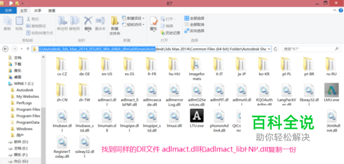 然后 ,去安装文件解压的目录,我这里在G盘G:\Autodesk_3ds_Max_2014_EFGJKS_Win_64bit_dlm\x64\max\Autodesk\3ds Max 2014\Common Files (64-bit) Folder\Autodesk Shared\AdLM\R7中,目录太深可以用搜索搜R7这个文件夹。找同样名字的DLL文件 两个 复制一份贴到那个C:\Program Files\Common Files\Autodesk Shared\AdLM\R7