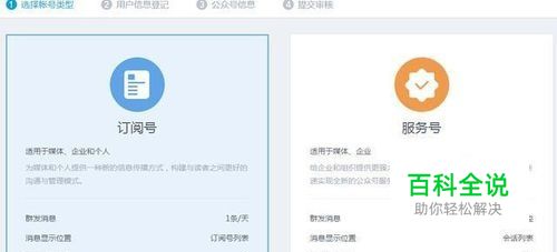 第二步,选择公众平台的类型,分类订阅号和服务号