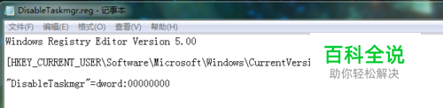 现在有了任务管理器按钮,可是还是不能用呢!这时就要放大招了:新建名字为*.reg的注册表文件,用记事本打开,在里面输入如下: Windows Registry Editor Version 5.00 [HKEY_CURRENT_USER\Software\Microsoft\Windows\CurrentVersion\Policies\system] "DisableTaskmgr"=dword:00000000 同样均为英文半角符号。 保存,打开,一路确定,再试试,能不能打开任务管理器了??理论上应该可以了!看到这个是不是很亲切?