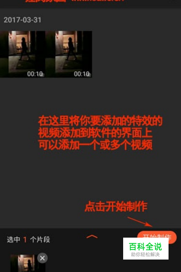 点击“编辑视频”后直接进入添加视频的界面,将你需要制作特效的视频添加到软件的界面,可以添加一个或者多个视频,添加完毕后,点击“开始制作”。