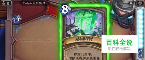 炉石传说报告大王第一步:打出恶魔研究,本回合中,所有牌消耗生命值,而非潜力值。