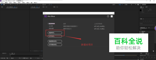 启动AE软件,然后在启动的AE软件界面中选择新建项目选项,单击新建项目创建一个新的AE项目。然后进入到这个AE项目中进行编辑。
