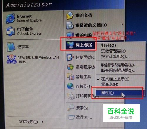 第二个是在系统桌面左下角部分,鼠标点击“开始”图标,在弹出的列表中,选择“网上邻居”,鼠标右击,在弹出的下拉列表中,选择“属性”,点击打开,会弹出一个叫“网络连接”的新窗口,如下图: