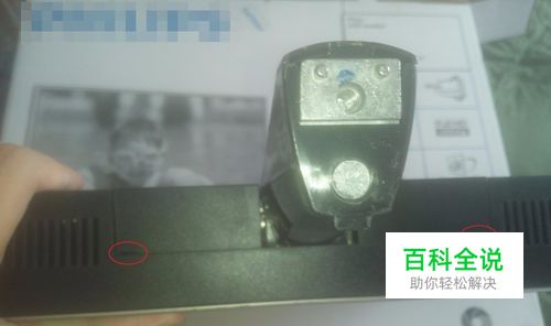 倒立显示器,会发现左右两侧有两个小缝隙(红圈处),将撬棒插入左侧缝隙,并撬起。
