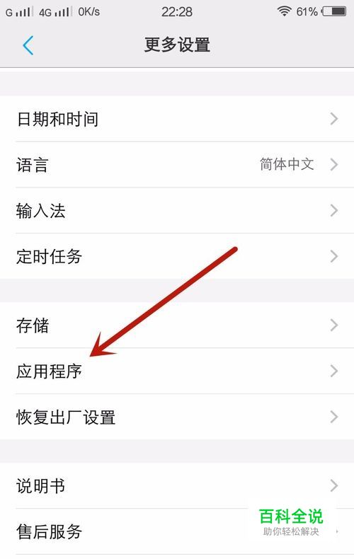 打开更多设置之后找到应用程序点击进去
