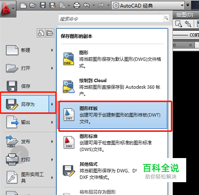 单击大【A】的图标,【另存为】--【图形样本】,文件后缀为.dwt