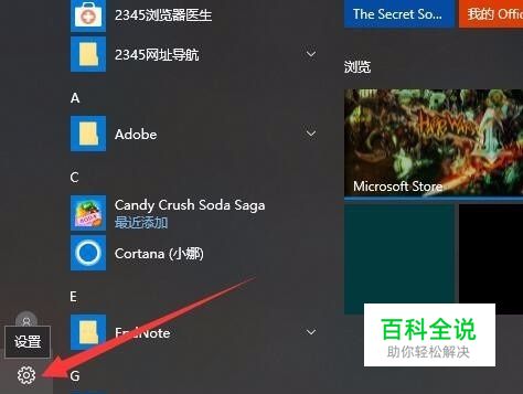 首先,点击任务栏左侧的开始按钮,在弹出的项目中点击设置,如图所示。