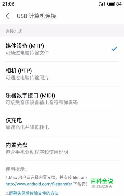 魅族手机设置USB计算机连接方式为媒体设备MTP