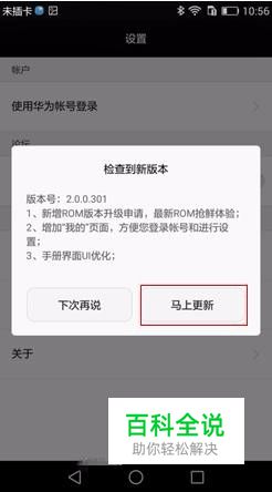 将手机中的“手机服务”应用升级至最新版本 方法①:打开手机服务,进入“个人中心→设置→检查新版本”,界面出现“检查到新版本”的提示框,点击“马上更新”下载最新版本