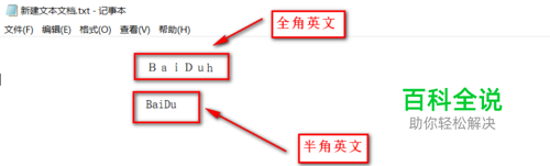 有时我们在打字得时候突然发现,我们的win10默认的输入法英文半角变成了全角的英文了,也就是如下的状态BaiDu。全角的英文不仅不太美观,并且有时也不太方便,我们需要将输入法 英文状态改为半角输入。也就是如下的样BaiDu。