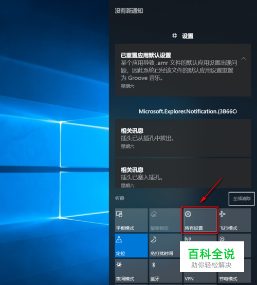 为什么有英文状态的输入法会突然变成全角呢? 那是因为你在打字的时候可能因为手快误按了 Shift+空格的快捷键,于是自动切换为全角输入了 实际情况你再按一次快捷键一般都能解决,但问题是部分用户的快捷键关闭了,于是无法切换过来 我们要做的就是激活快捷键 在win10任务栏右下角点击通知图标 在弹出的菜单中点击 所有设置