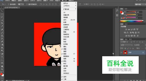 点击上方菜单栏的窗口选项,若如果页面中已经有图层窗口,则跳过此步。