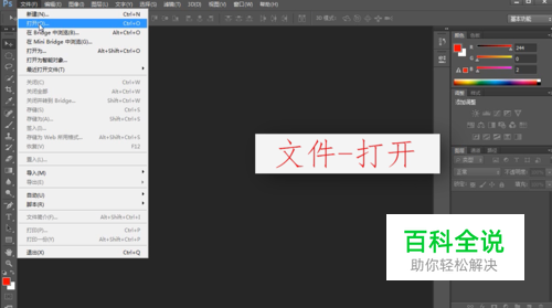打开PS,左键单击文件,点击打开,打开一张素材。