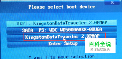 启动电脑,在启动的时候按启动键,这就和主板的牌子型号有关了,我用的主板按F12,进入启动菜单,并选择U盘启动。