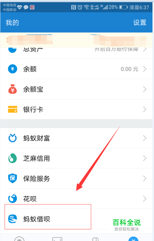 在“我的”页面,如下图所示,点击该按钮进入借呗。