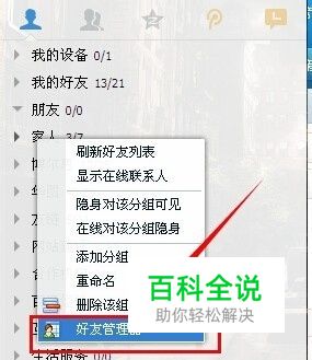 这种最简单的,直接打开QQ面板,然后在好友分组随便一地方,右击鼠标,选择“好友管理”选项: