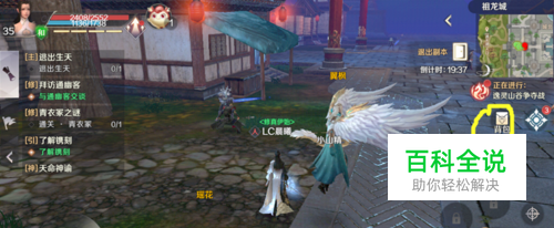 之后,玩家的角色会自动寻路到祖龙城的邓兰松处,到了之后,我们点击下侧的交谈,进入交谈界面。