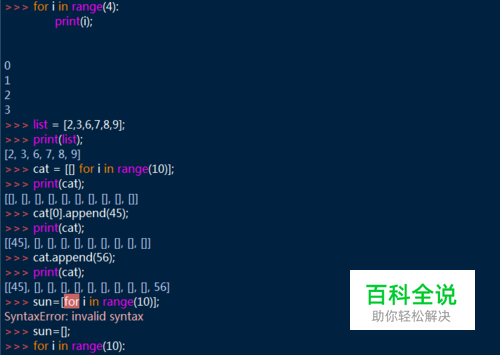 第六步,将range生成的数据填充到列表中,利用for...in...循环遍历,如下图所示: