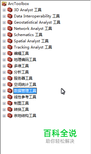 打开ArcMap的“ArcToolbox”,进入“数据管理工具”菜单。