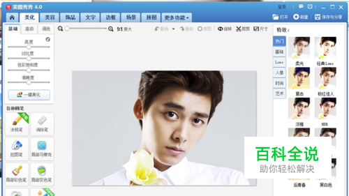 5、选择“美化”选项下的“基础”--50%“锐化”;6、还是在“美化”选项下选择100%“智能绘色”。