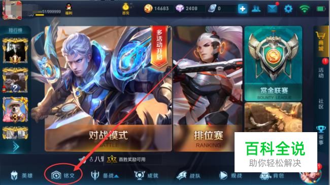 打开游戏,进入游戏主界面,在主界面左下方找到“铭文”按钮。点击进入