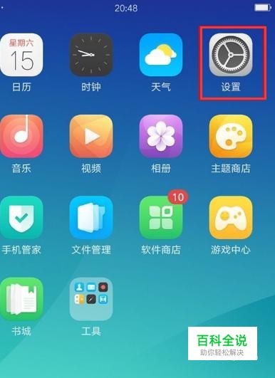 唤醒手机,在手机桌面上找到“设置”插件,点击进入设置。