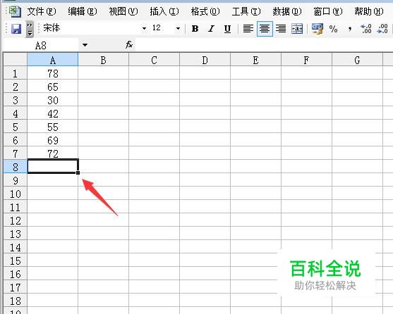 在该界面的单元格内输入一组数据,并选择一个单元格,如图所示:
