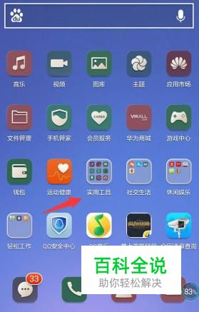点击手机桌面“实用工具”图标,如图所示