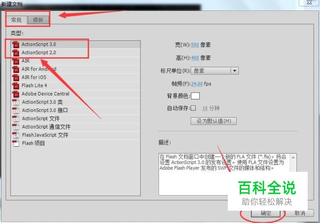 新建文档 双击桌面上的Flash图标,打开软件。在主界面中找到【文件】,在下拉菜单中选择【新建】,会弹出【新建文件】对话框,选择创建【ActionScript 3.0】类型的fla文档。