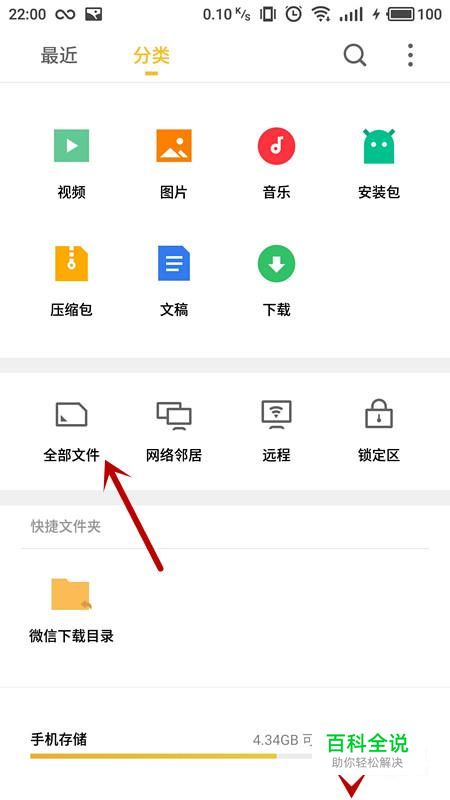 进入文件管理界面,选择“全部文件”