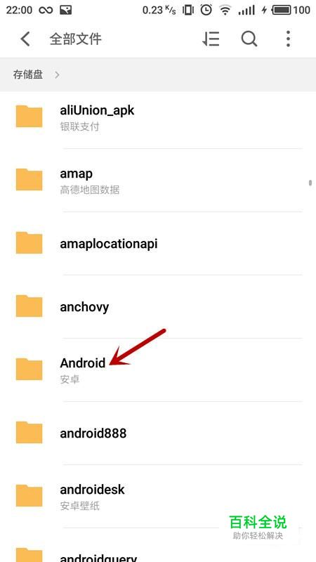 在全部文件夹中,选择“android”文件夹。