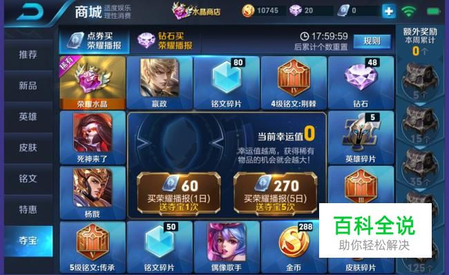 每次夺宝都能积累幸运值,最终抽取水晶大奖可以在水晶商店中兑换英雄和皮肤。
